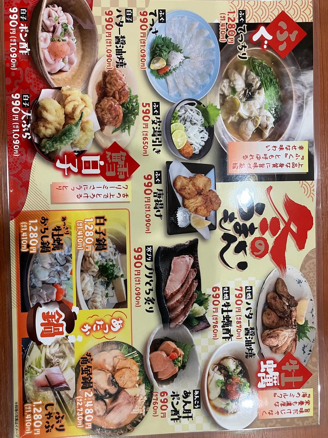 12月のメニューで温かいお鍋やフグてっさなど冬の旨いもん取り揃えました🍲